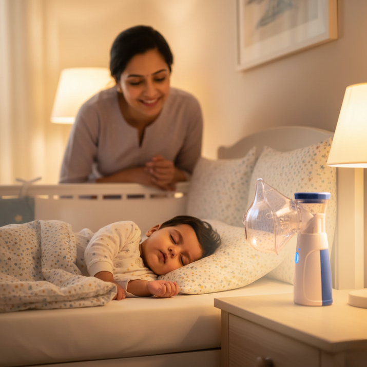 Answer 1: Yes, absolutely! PueVibe Pro is safe from 0 months and recommended by 1,200+ pediatricians across India. It uses the same gentle mesh technology found in hospital pediatric units. The whisper-quiet operation (50dB) won't scare your baby, and the ultra-fine mist is specifically designed for tiny airways. We include a specialized baby mask (0-3 years) that fits comfortably. Thousands of parents trust it for their newborns' breathing relief.